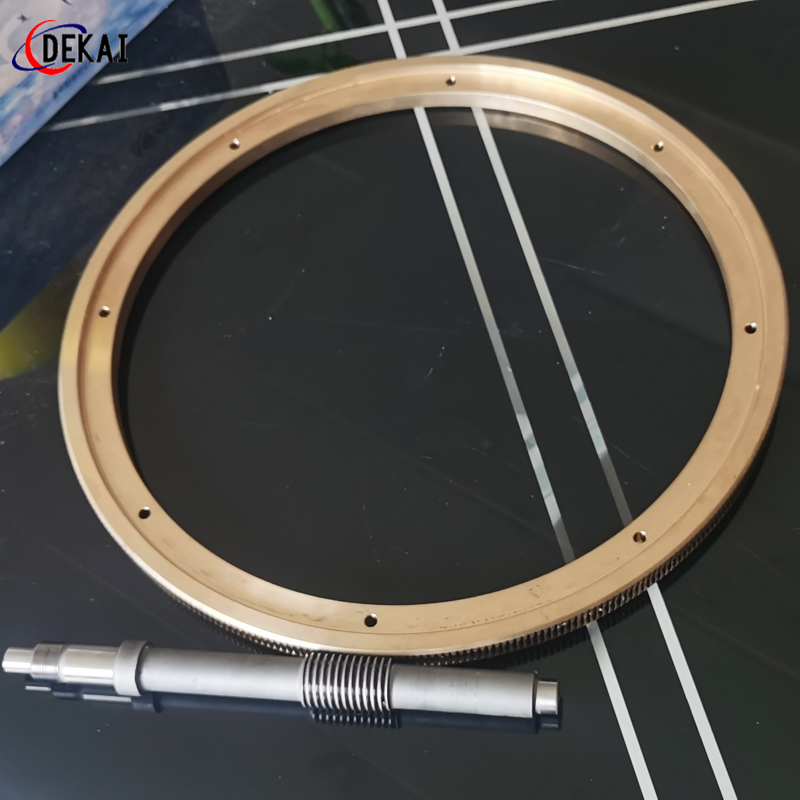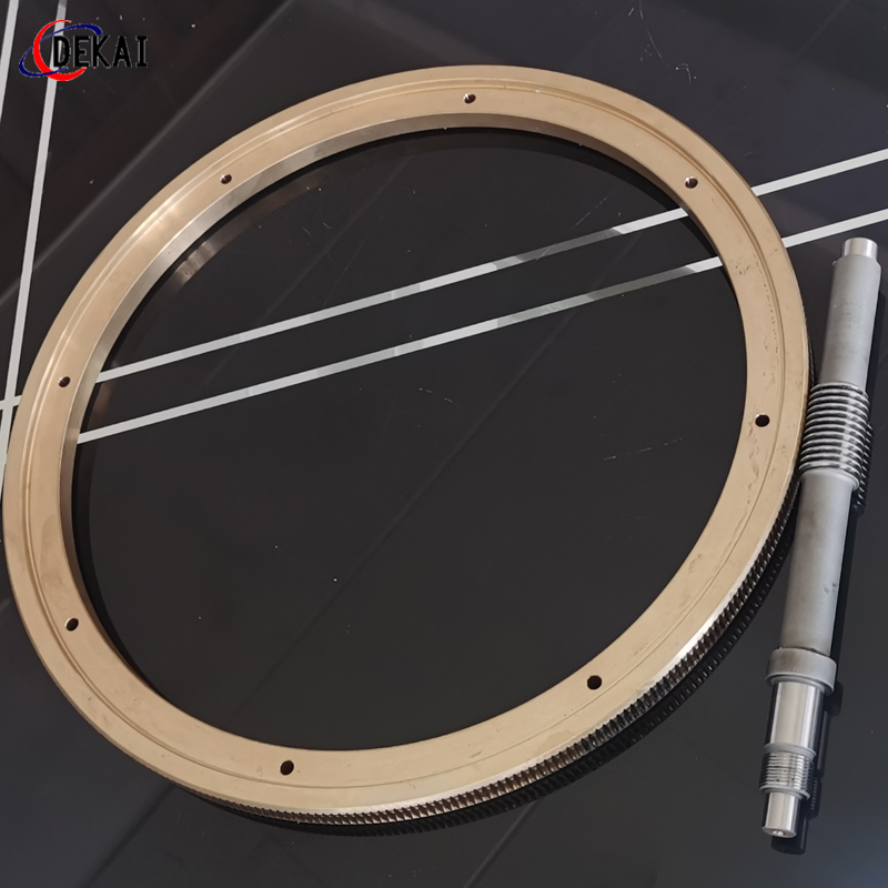 蝸輪系統(tǒng):材質(zhì):蝸輪特殊高強(qiáng)力鋁青銅合金;蝸桿:38CrMoAl合金鋼,正?;鬂B碳HRC60以上。