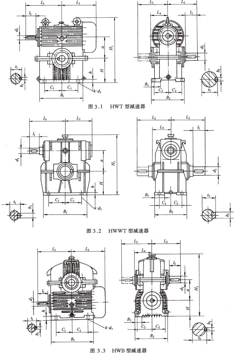 (3)HWB型—蝸桿在蝸輪之下鑄造機體和機蓋直廓環(huán)面蝸桿減速器;