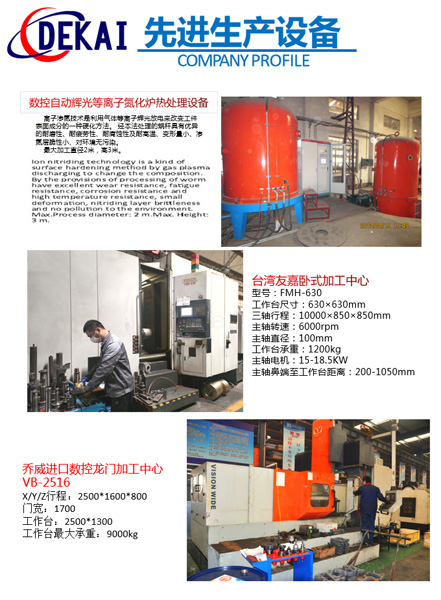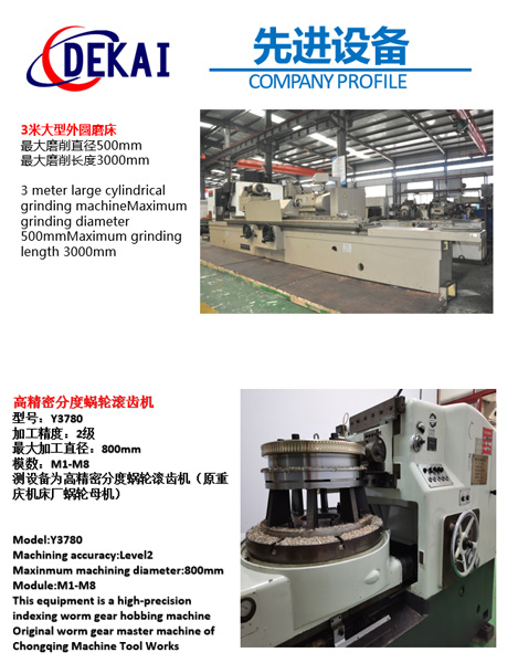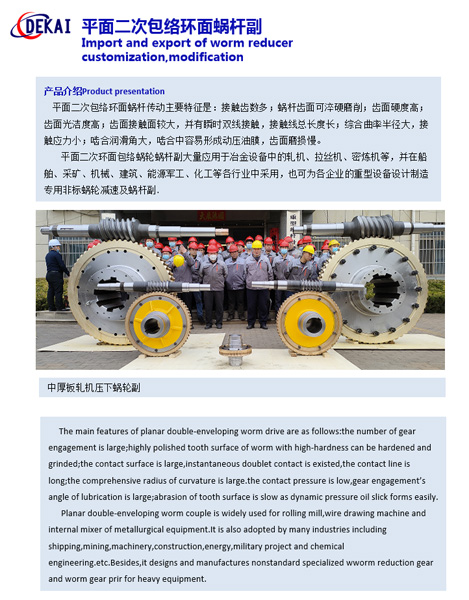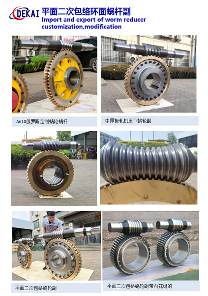 德州德凱減速傳動(dòng)機(jī)械有限公司采用雙蝸桿對(duì)消隙原理開發(fā)生產(chǎn)的精密蝸輪蝸桿副,主要用于大型機(jī)床工作臺(tái)的驅(qū)動(dòng),高精密分割器等無(wú)間隙圓周運(yùn)動(dòng)精確定位場(chǎng)合。該蝸輪副中心距最大可做到2000mm,單節(jié)速比可做到1-365同時(shí)不產(chǎn)生回程間隙。
